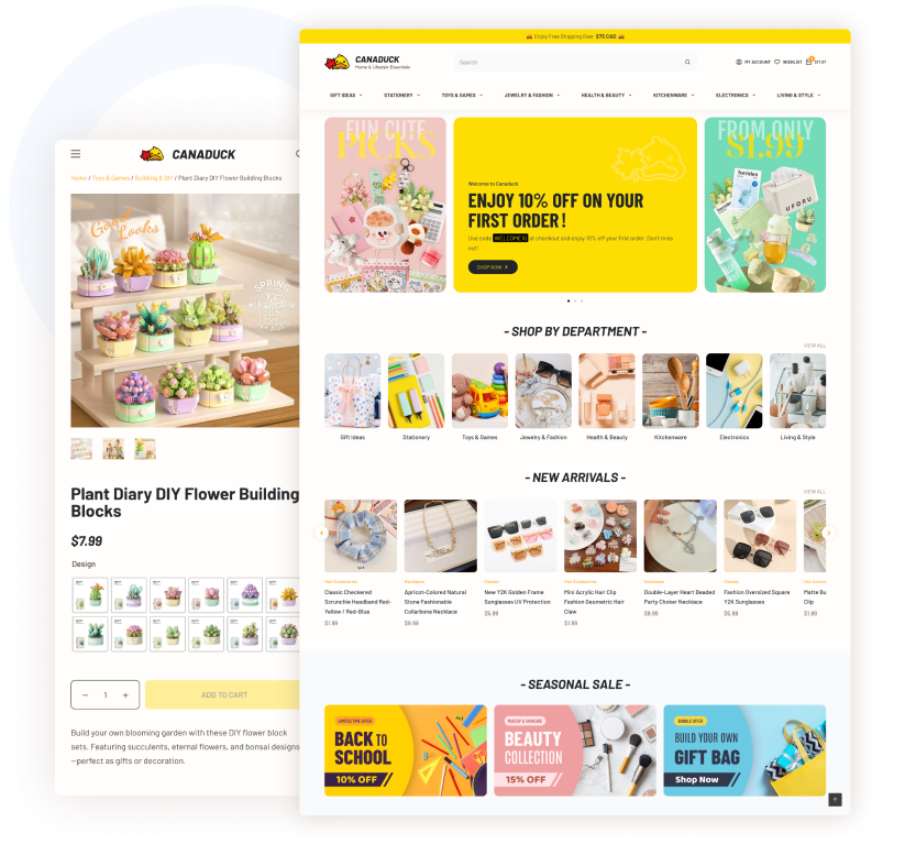 Canaduck is a newly founded retail store that has recently gained rapid popularity on social media and is looking to grow beyond its physical shop. I led the design and development of a low-cost, low-code e-commerce platform that expanded their sales reach and solved critical inventory challenges.
